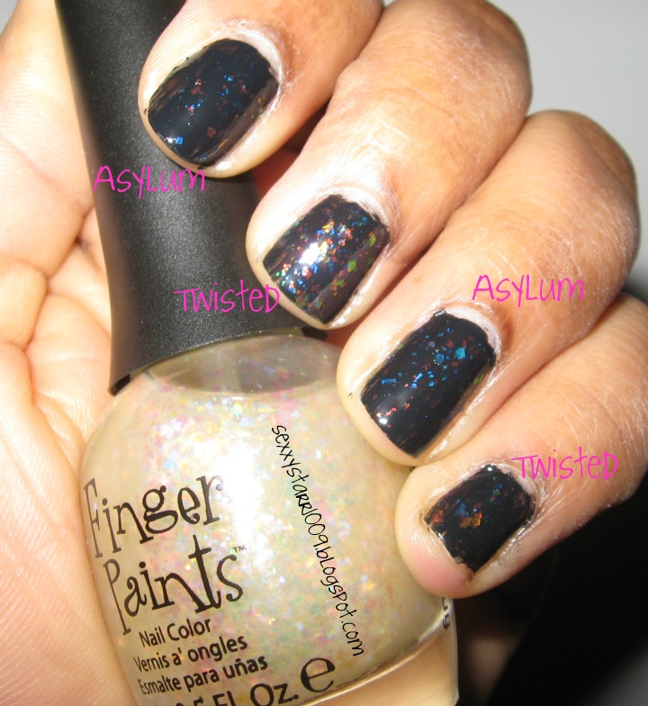 wanted. The first Sally's I went to said they had Twisted on the shelves but once I got there they didn't. Luckily, Loro was willing to drive to the other Sally's (which was quite a distance - he said we've drove far for his video games, why not for my nail polish) and I got Asylum and Twisted. I did not want Flecked and Motley (because I want to get Zoya Opal and Maisie) nor did I want Flashy (because I have Hidden Treasure and plus I want Zoya Chloe). Now once I happily showed Loro what I got, of course he said "